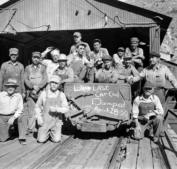 Miners with the last coal car in 1950.